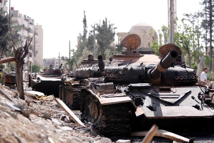 A damaged military vehicle is seen at the city of Douma in Damascus, Syria, April 20, 2018. /Reuters Photo