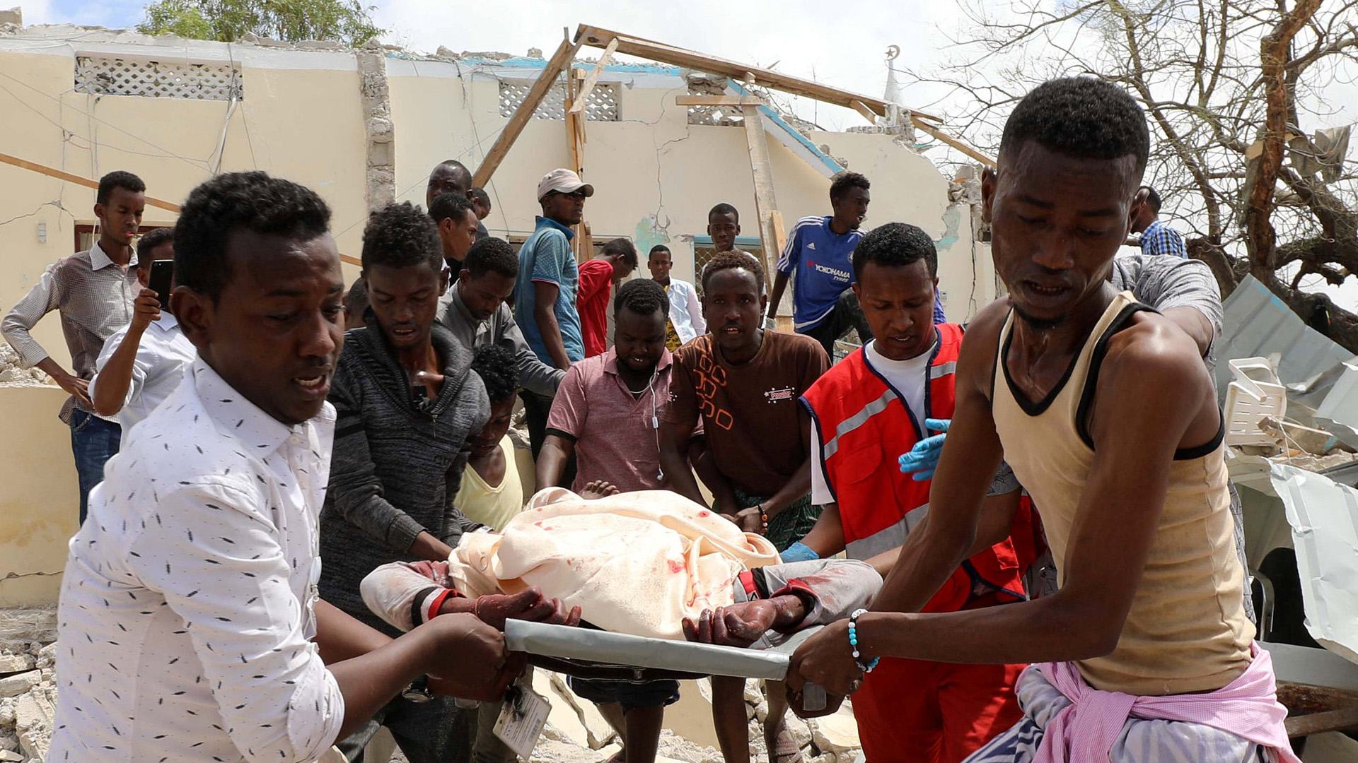 At least six people were killed and 16 hospitalized in a suicide car bombing targeting Mogadishu's Hodan district headquarters on Monday. The militant group al-Shabab claimed responsibility for the attack.