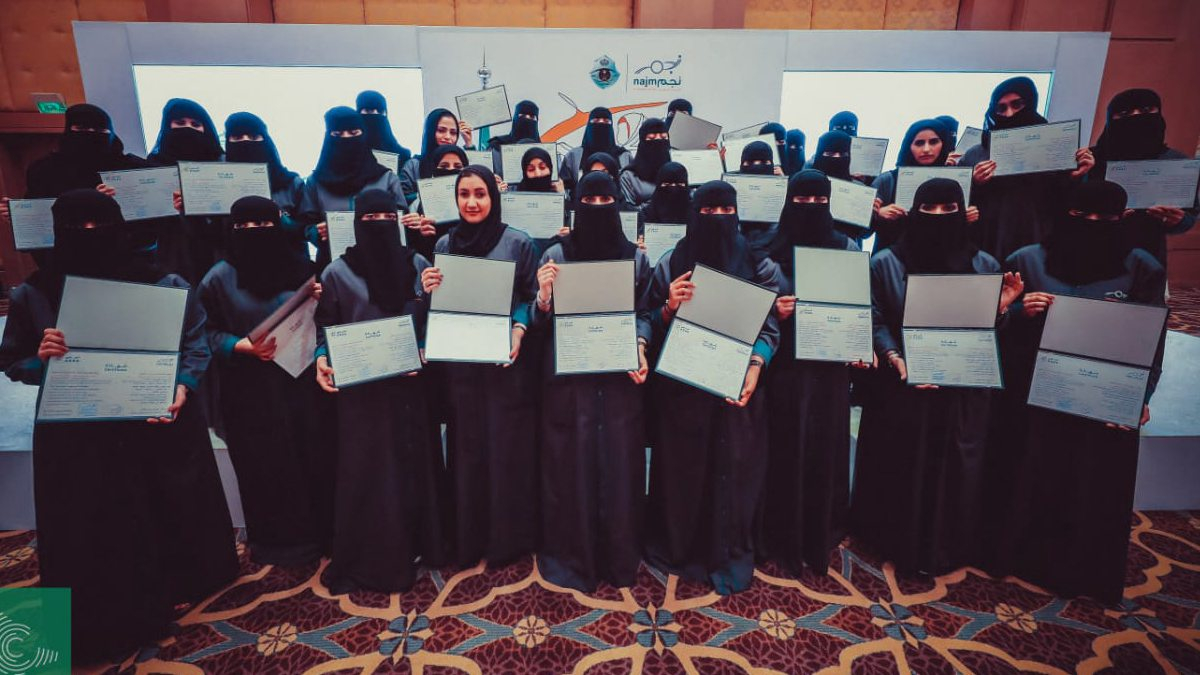 The women graduated from a joint program of the Saudi General Directorate of Traffic and Najm Insurance Services for training traffic accident investigation and management.