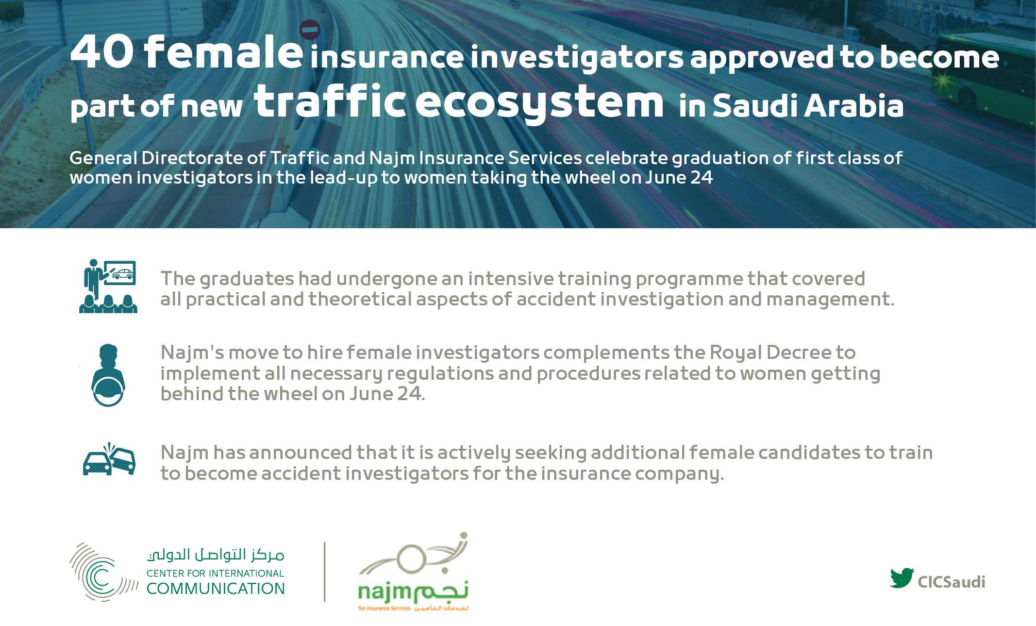 Maha Al Shanifi, general manager of corporate communications and marketing at Najm, on that occasion had said that the move reflects the importance of empowering women to be productive members of society, and pointed to the investigators’ positions as a means of achieving that, according to a CIC press release.
