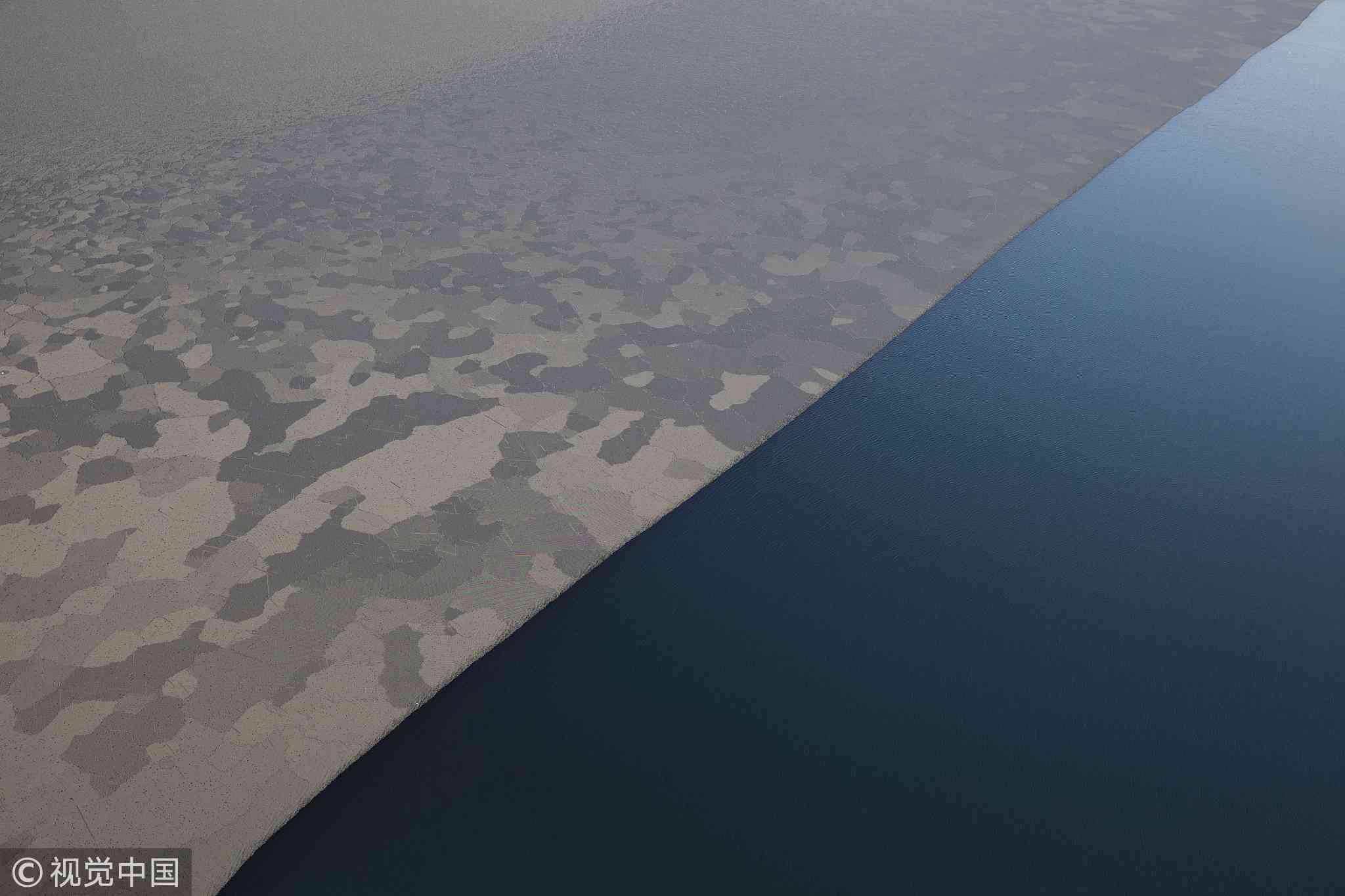 Black plastic balls, known as "shade balls," float in the Los Angeles Reservoir to protect water quality in compliance with EPA rules in this aerial photograph taken over Los Angeles, California, August 31, 2015. /VCG Photo