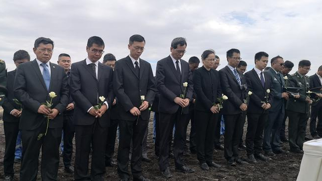 They set up an altar outside the fences that surrounded the scene of the accident and placed offerings and white roses on it. Tan Jian, Chinese ambassador to Ethiopia, delivered a memorial speech at the ceremony and led the participants in a moment of silence before laying wreaths for the eight Chinese victims.