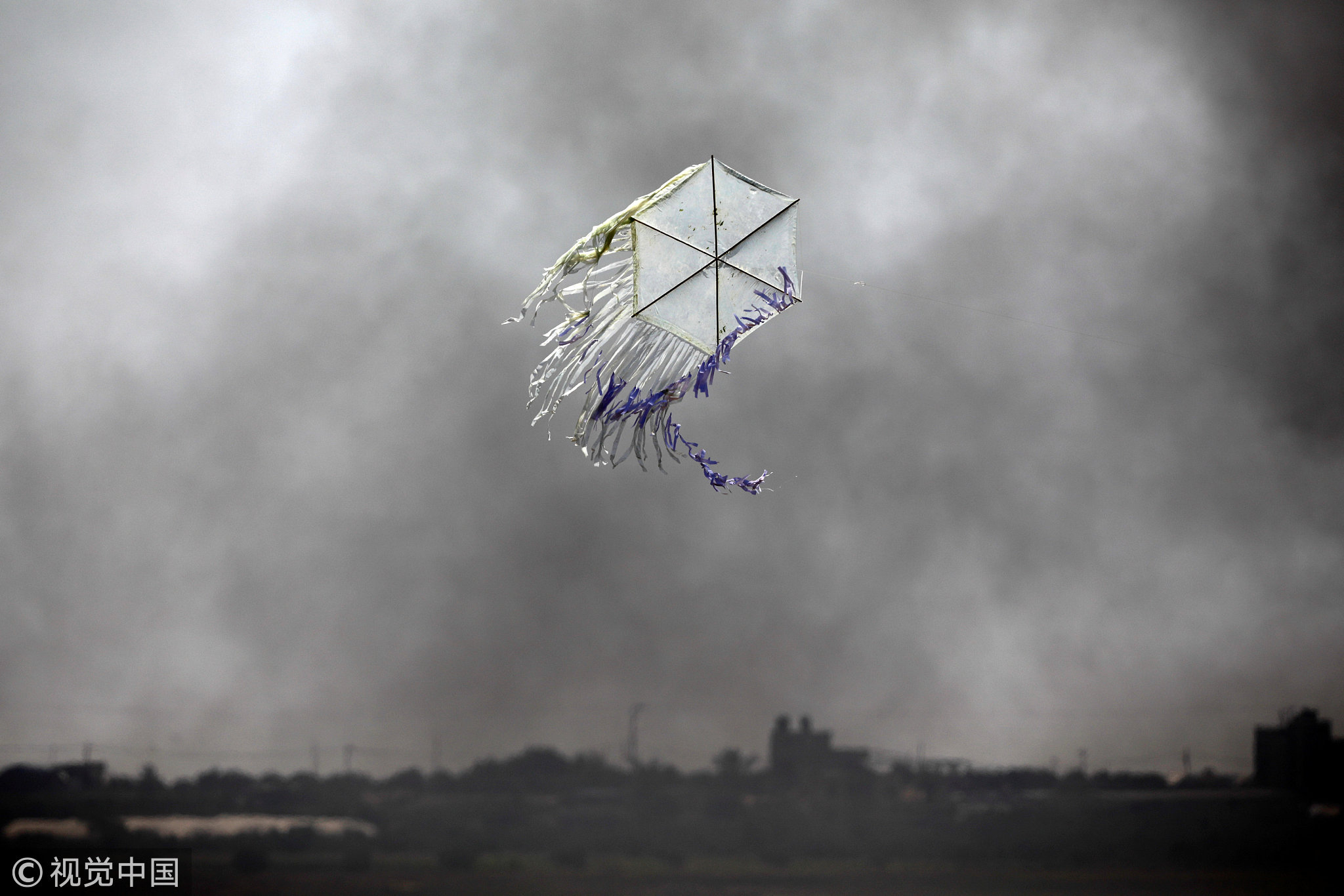 A kite flies over the border in an area where kites and balloons have caused blazes, between Israel and the Gaza strip June 8, 2018. /VCG Photo