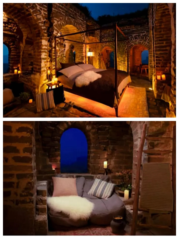 Photo of the "room" set up in a torch tower on the Great Wall /Photo via Airbnb