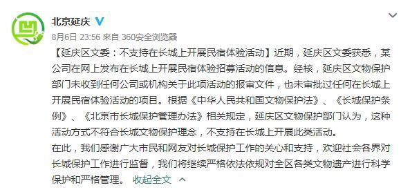 They also expressed gratitude to the residents and netizens for caring and supporting the conservation work of the Great Wall, and welcomed supervision from the society.