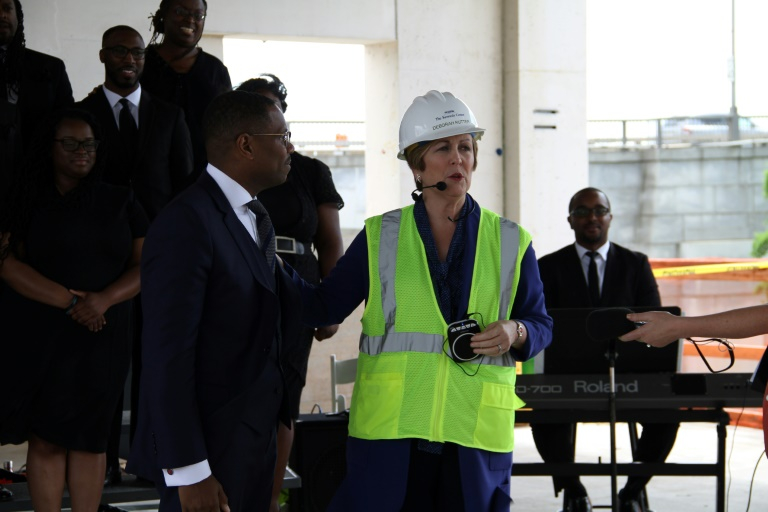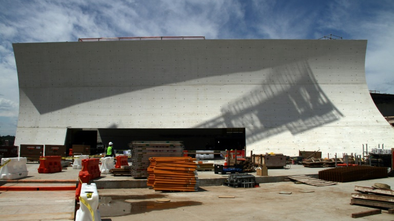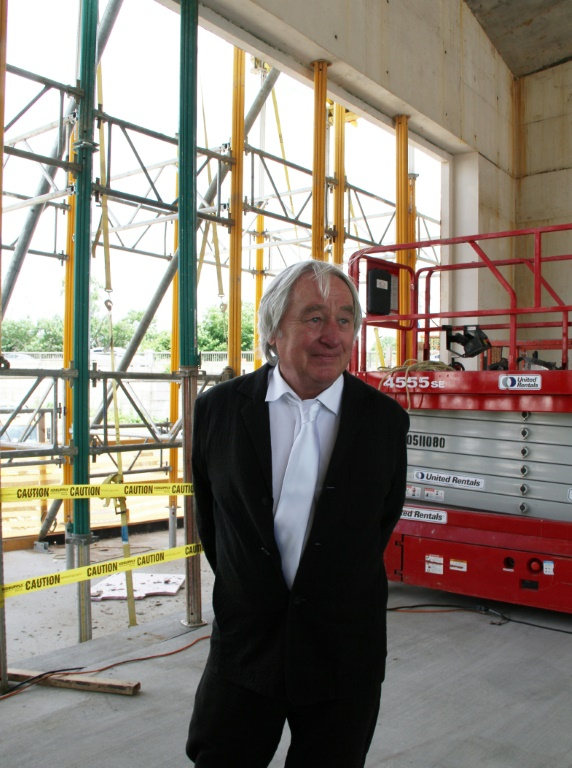 Holl stands in the REACH's River Pavilion under construction. /AFP Photo