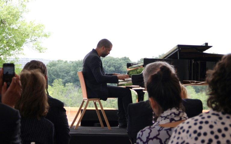 In the first performance at the REACH, Kennedy Center artistic director for jazz Jason Maron played a piece that included glissando, the upward or downward slide of notes that architect Steven Holl says inspired his design. /AFP Photo