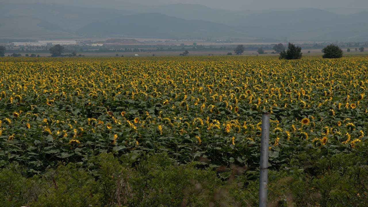 Sunflower fields where the new smart city St. Sofia will be constructed /CGTN Photo