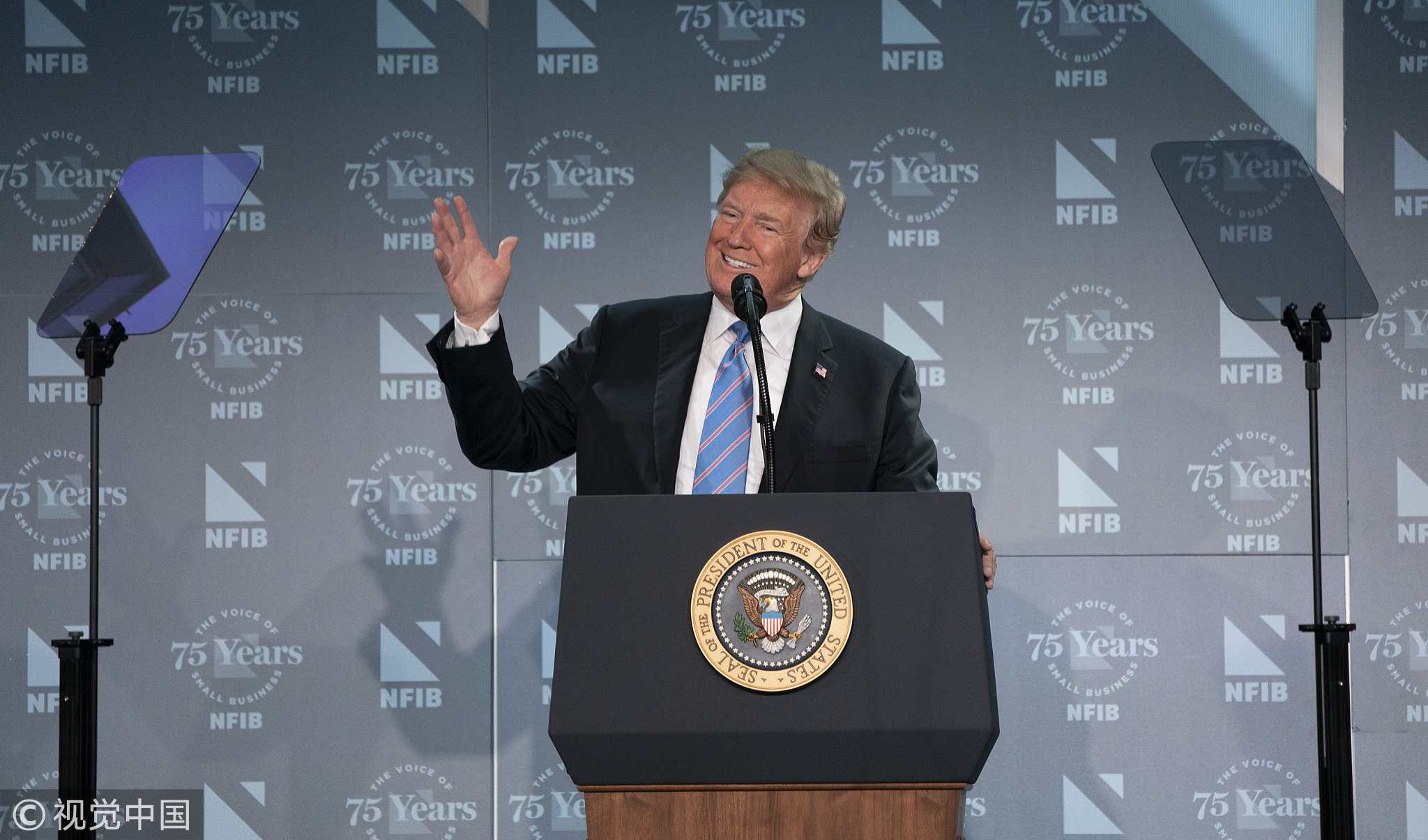 US President Donald J. Trump addresses the National Federation of Independent Businesses 75th Anniversary Celebration in Washington, DC, June 19, 2018. /VCG Photo