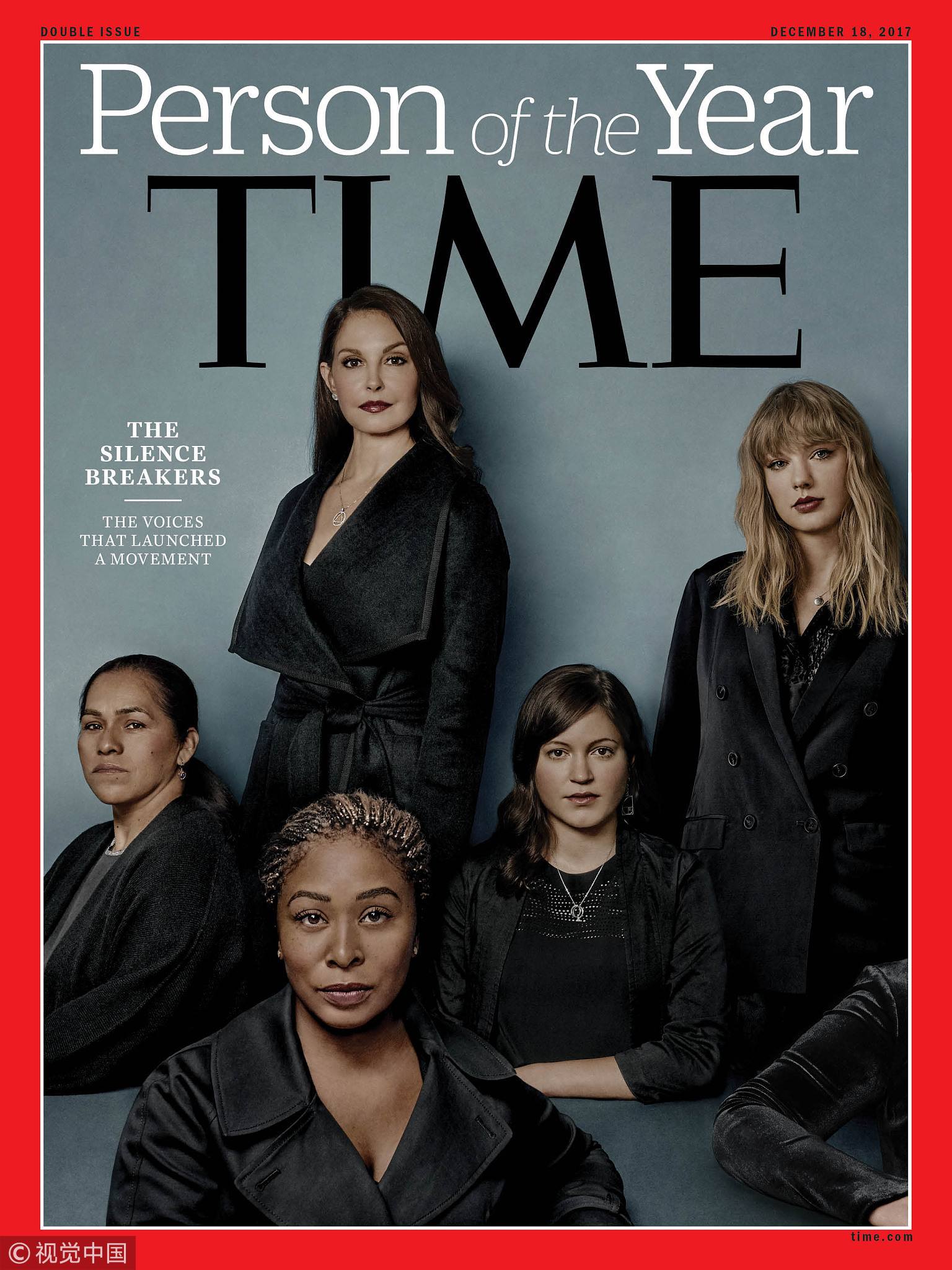 The faces of five women including singer Taylor Swift (R) appear on Time's 2017 Person of the Year cover, representing the "The Silence Breakers." /VCG Photo