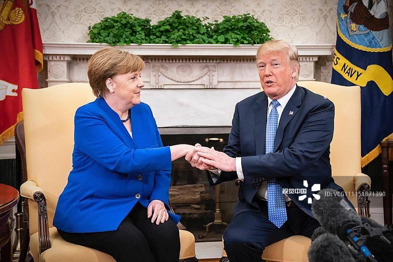 US President Donald Trump meets German Chancellor Angela Merkel at the White House in Washington, DC, US, April 27, 2018. /VCG Photo