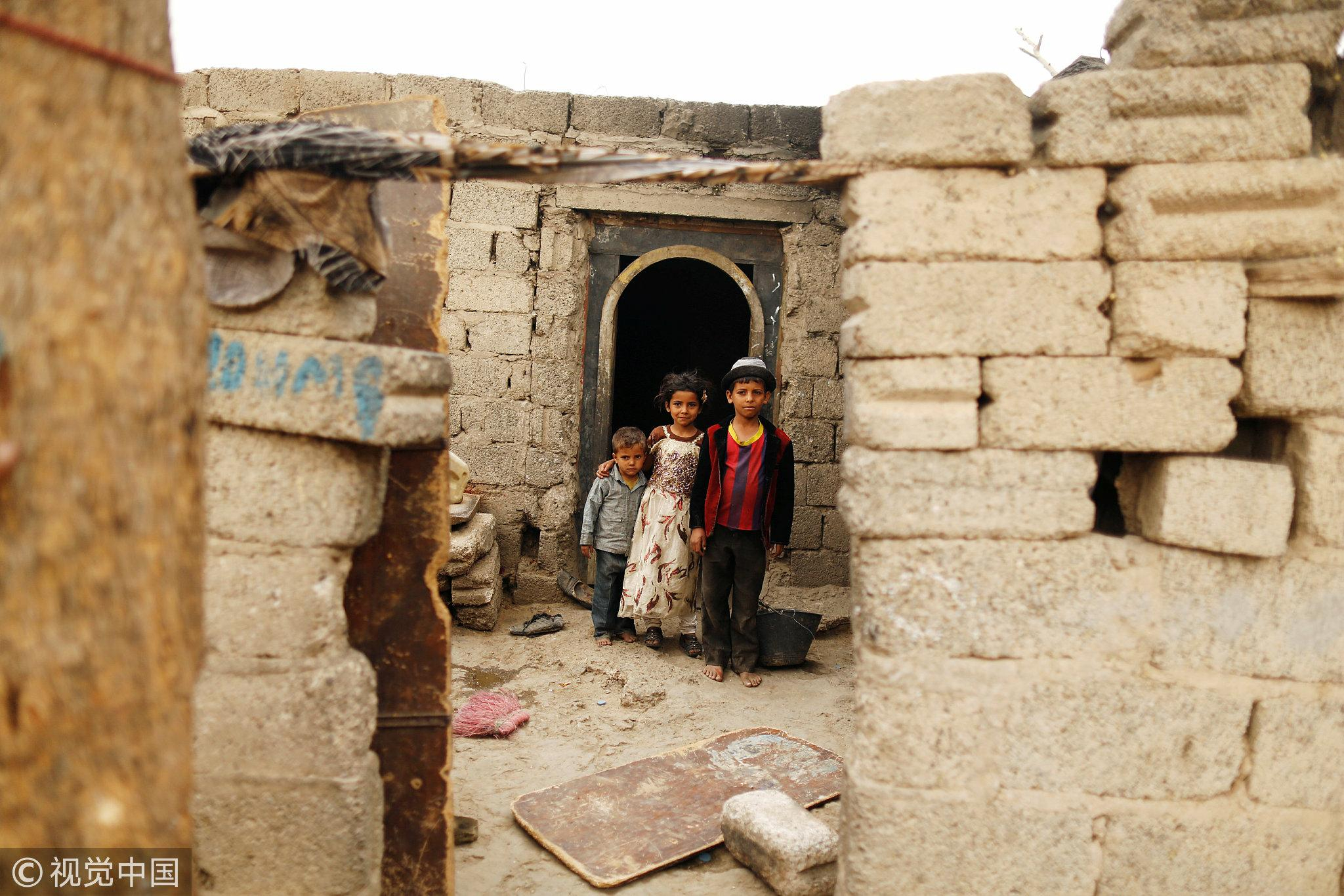 Children displaced from the Red Sea port city of Hodeidah stand in their shelter in Sanaa, Yemen, July 18, 2018. /VCG Photo