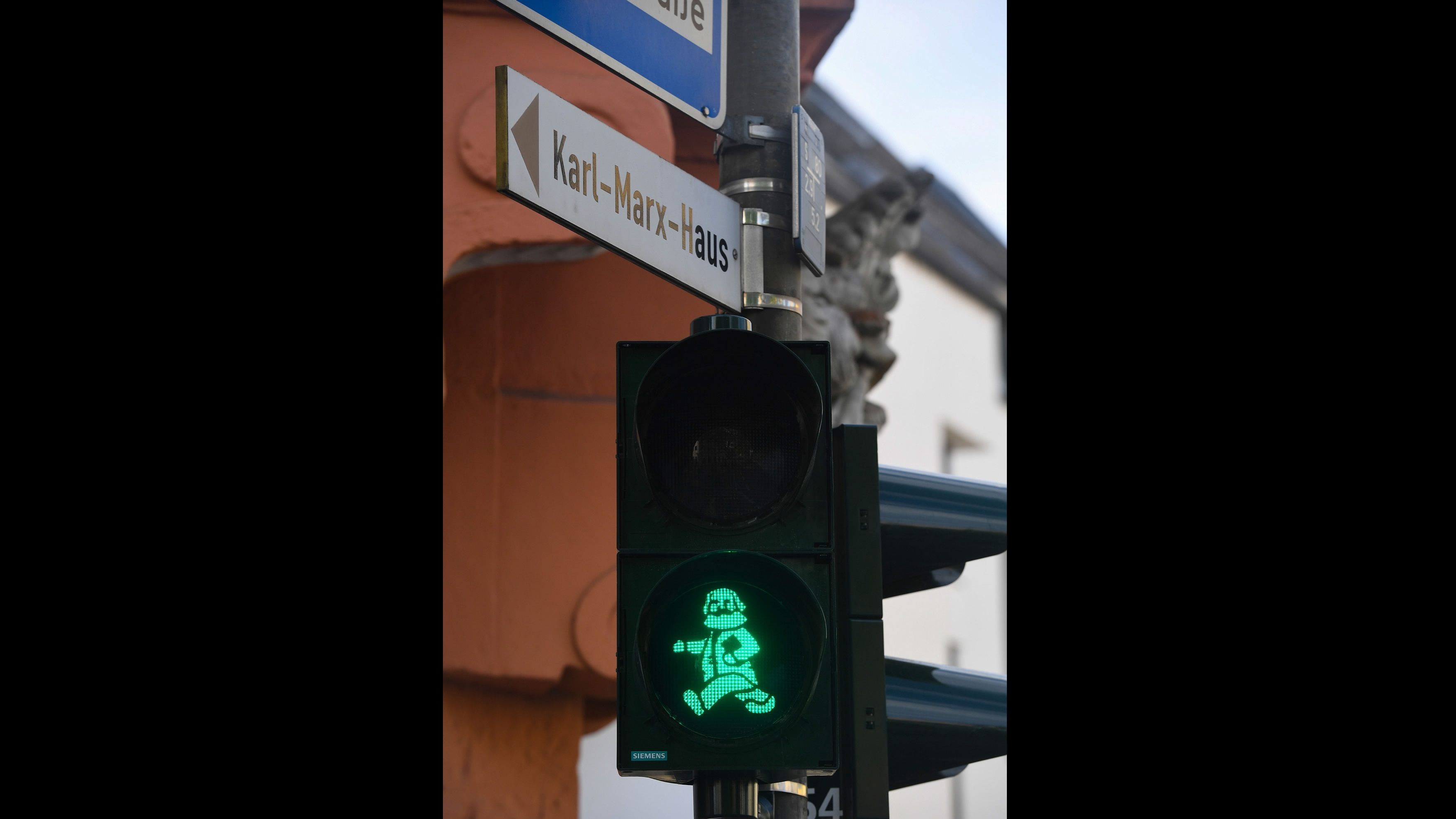 A pedestrian traffic light featuring German philosopher Karl Marx has appeared in Trier, southwestern Germany, in celebration of the 200th anniversary of his birth. /VCG Photo