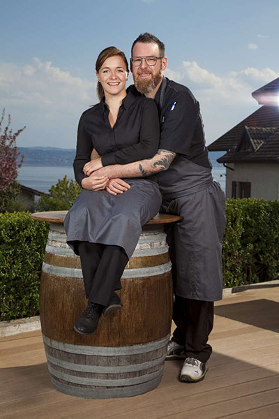 Chef Marc Strebel (right) and his partner Caroline Arlettaz. /China Daily Photo