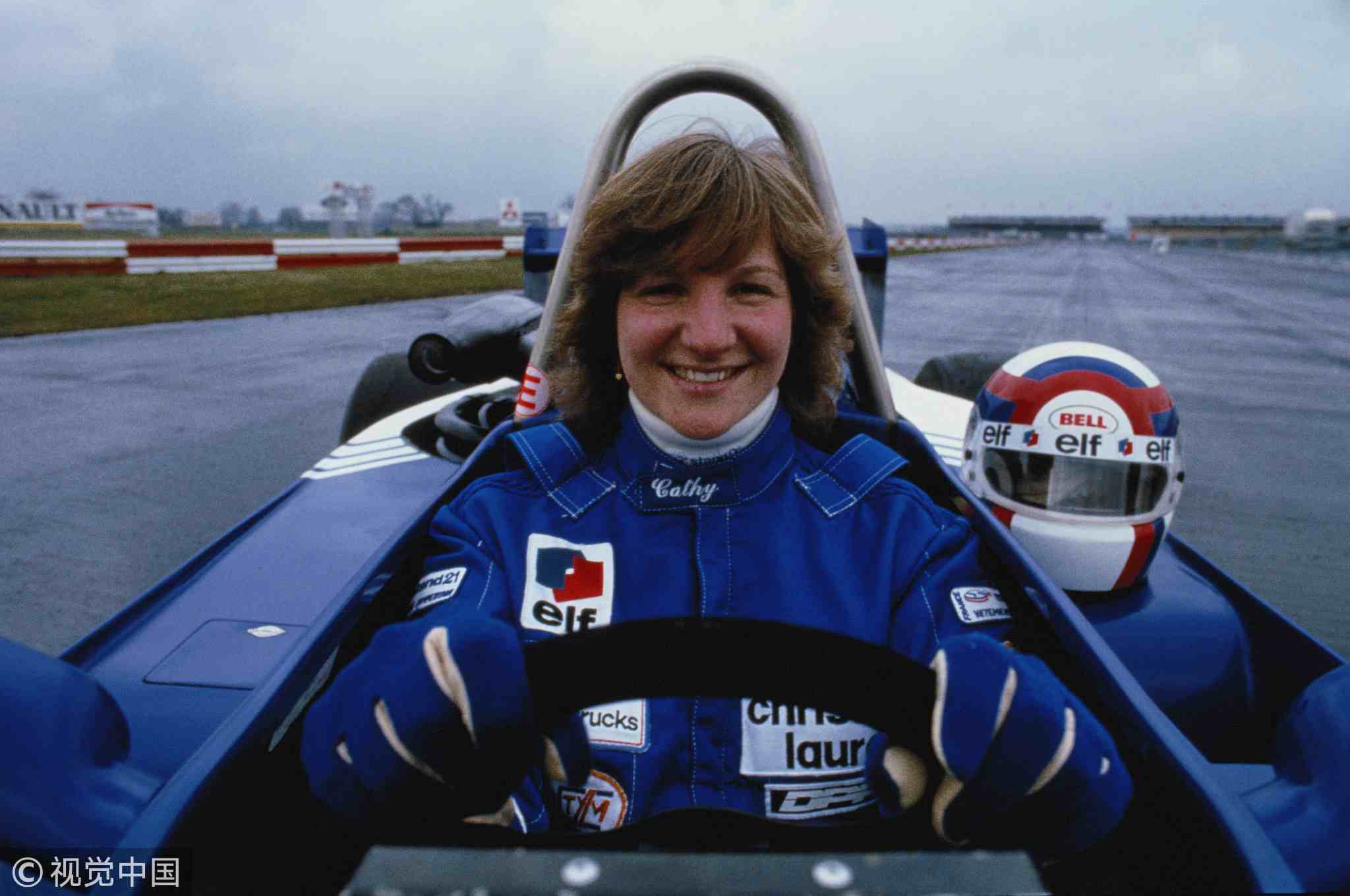 French former racing driver Cathy Muller competes in a Formula Three race in the UK, April 1985. /VCG Photo