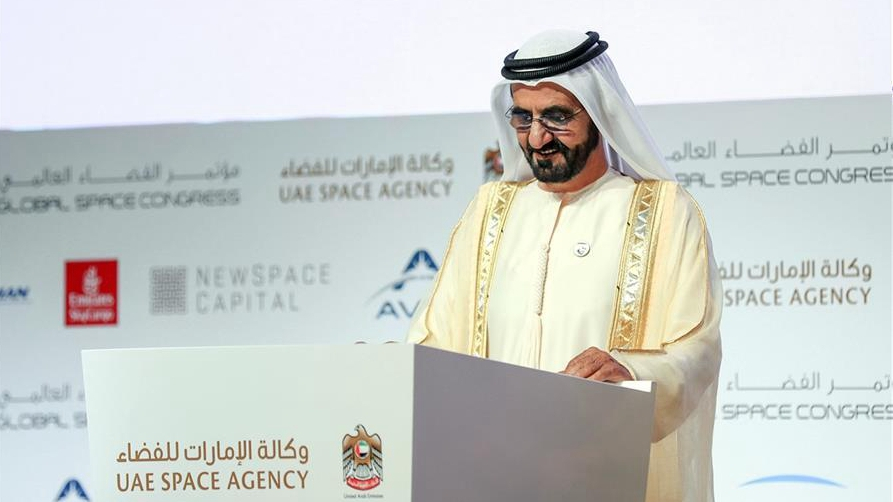 (Top image: Sheikh Mohammed bin Rashid al Maktoum, UAE vice president and ruler of Dubai, speaks during the ceremony of signing the charter for the Arab Group for Space Collaboration in Abu Dhabi, the United Arab Emirates, March 19, 2019. /Xinhua Photo)