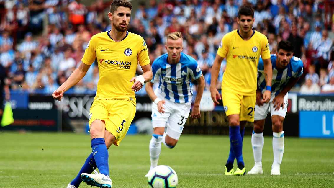 Chelsea manager Maurizio Sarri got off to a winning Premier League start as new signing Jorginho slotted home coolly from the penalty spot in a 3-0 win at Huddersfield on Saturday.
