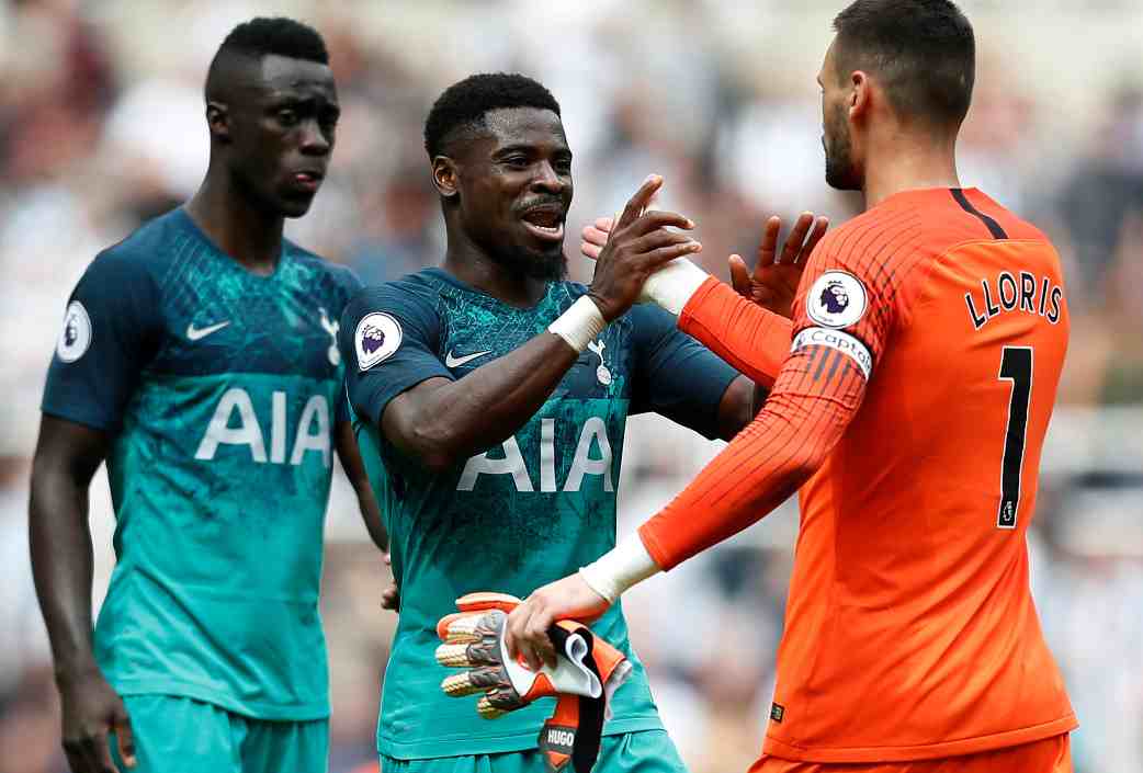 Hugo Lloris, Serge Aurier and Davinson Sanchez celebrate after the match between Newcastle United and Tottenham Hotspur. /VCG Photo