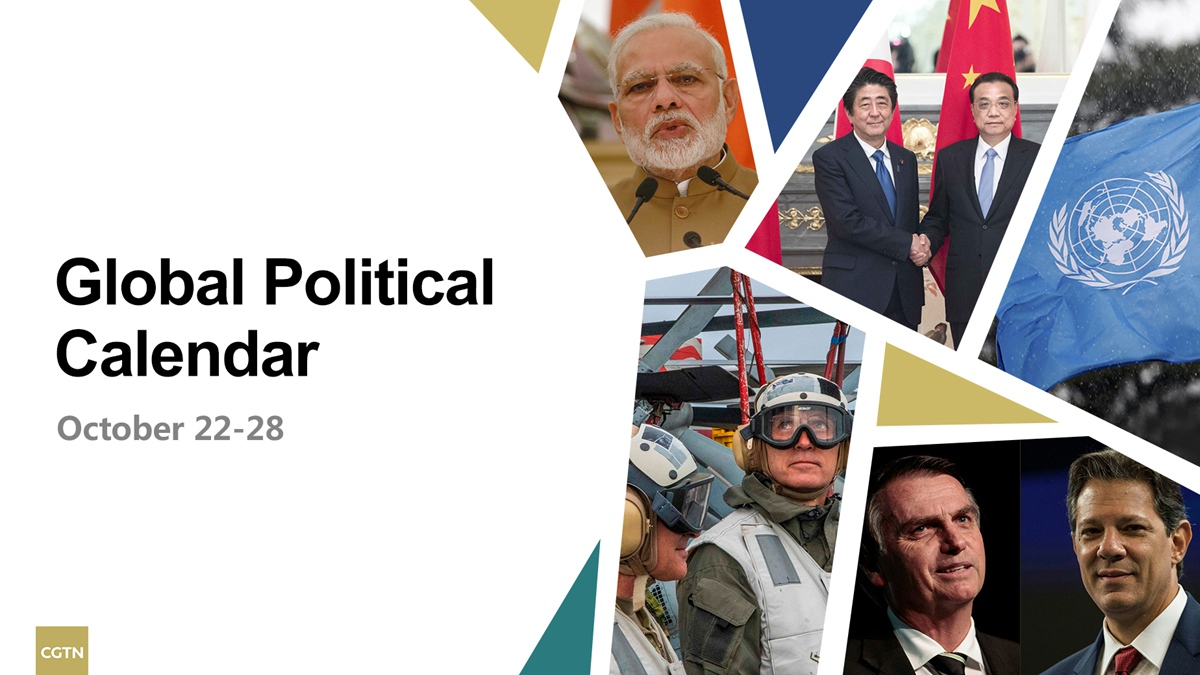 Sunday: Indian Prime Minister Narendra Modi begins a two-day visit to Japan, Jair Bolsonaro and Fernando Haddad compete in Brazil's presidential runoff, and Georgia holds its presidential election.