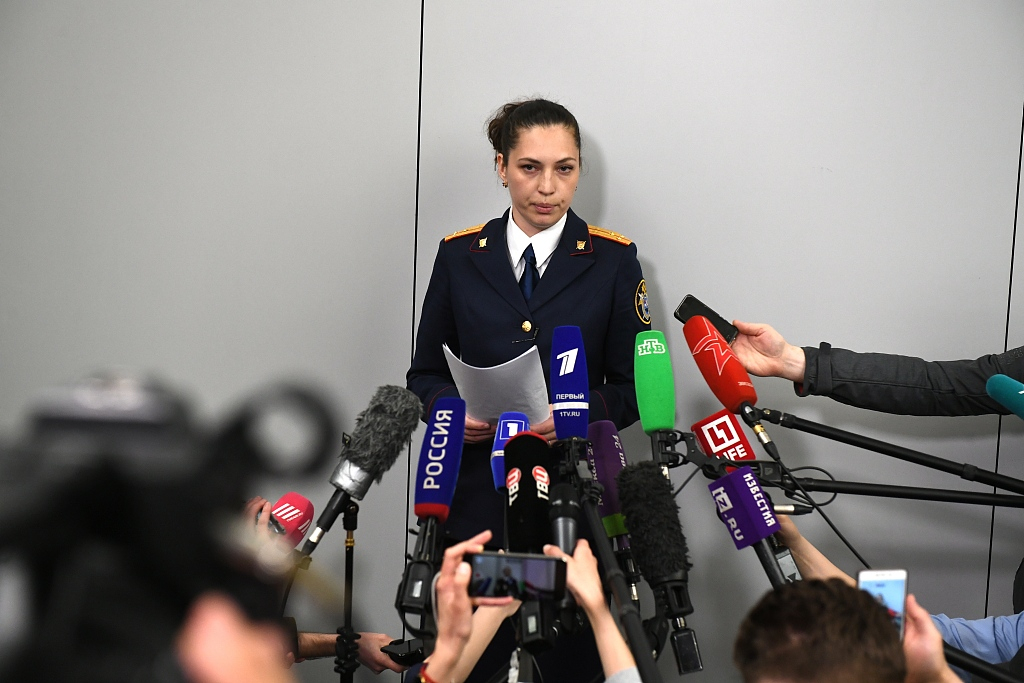 Yelena Markovskaya of the Russian Investigative Committee talks to journalists at Sheremetyevo Airport where the aircraft made an emergency landing. /VCG Photo