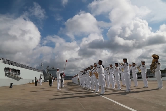 A ceremony is held before ships carrying Chinese military personnel depart from a south China port on July 11, 2017, to set up the PLA support base in Djibouti. /VCG Photo