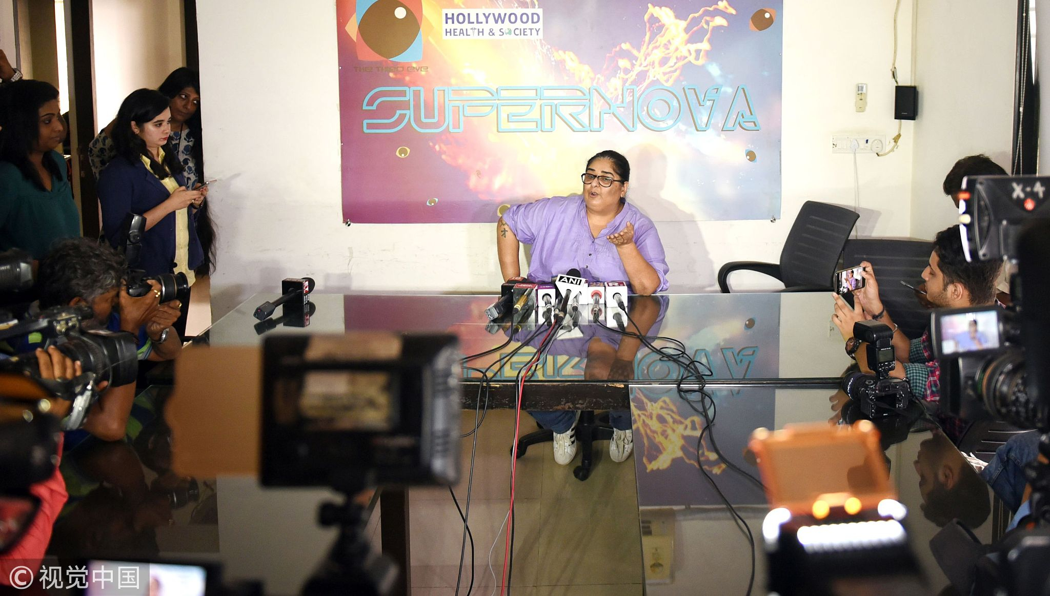 Bollywood writer-producer Vinita Nanda speaks during a press conference for Alok Nath sexual assault allegation in Mumbai, October 9, 2018. /VCG Photo