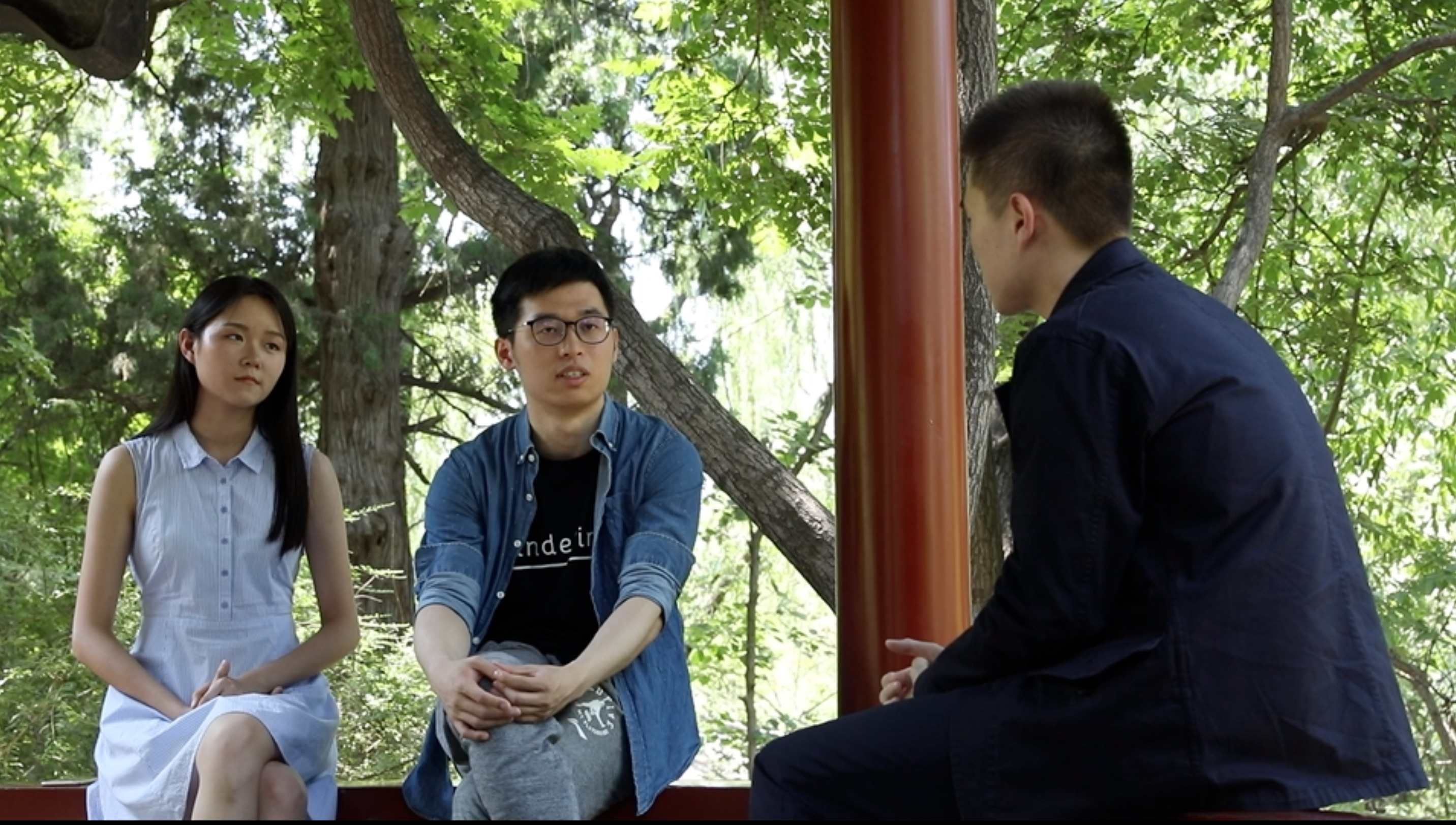 Li Chaohui (L), a junior at Peking University and Yang Xinlei (C), a junior at Tsinghua University speak with CGTN in Beijing. /CGTN Photo