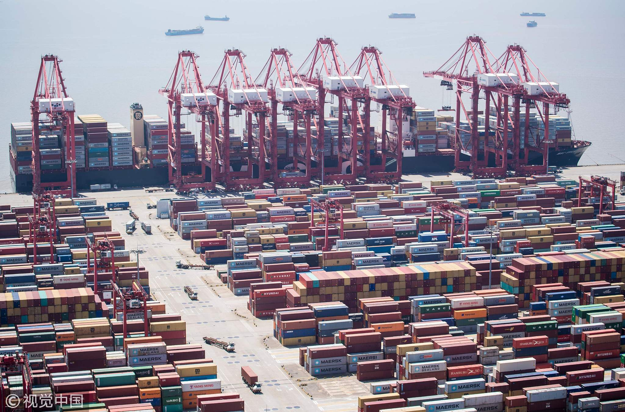 A US cargo ship at Yangshan Deep-Water Port in Shanghai, China, April 9, 2018. /VCG Photo