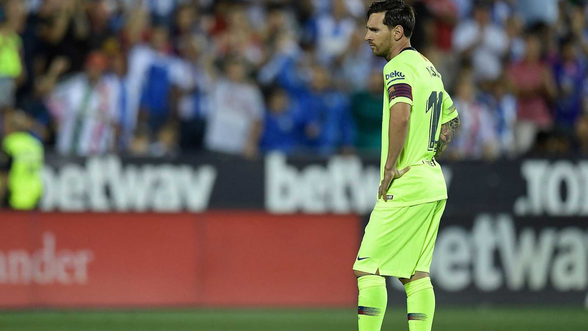 Messi looks visibly crestfallen by Barcelona's meek performance against Leganes, September 26, 2018. /VCG Photo