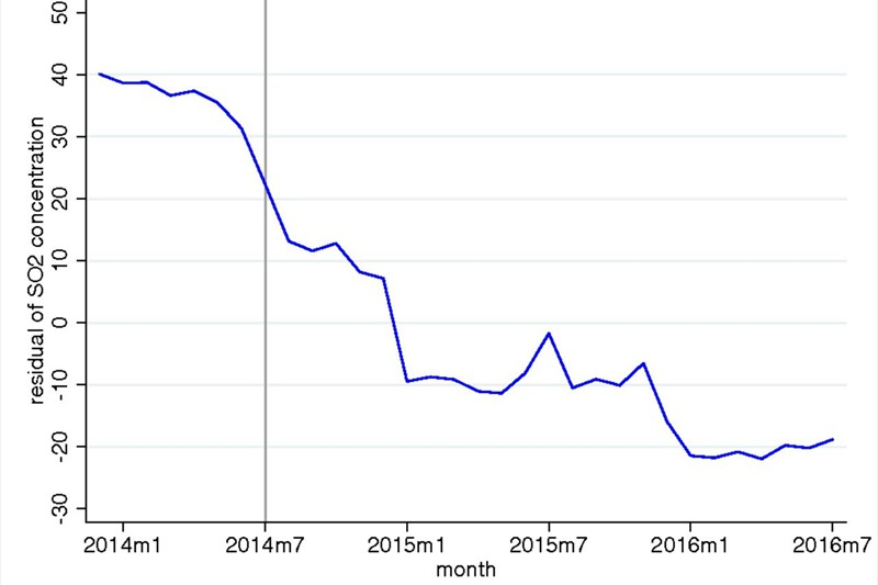 Researchers found that the strict policy reduced sulfur dioxide concentration by 13.9 percent overall, however there were variances between key and non-key regions.