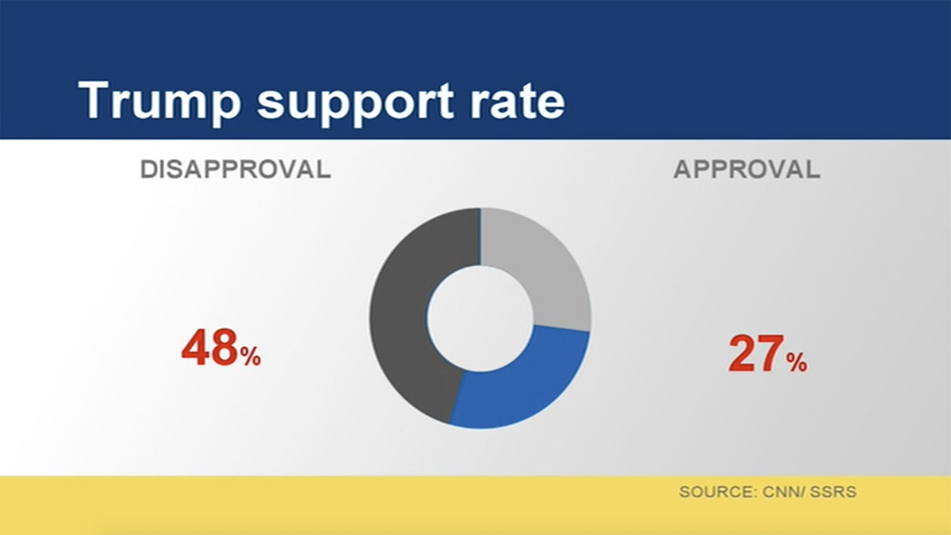 Support for US President Trump rate appears to be declining. According to a CNN poll conducted by survey research firm SSRS in September, only 36 percent of Americans support the way Trump has handled his job. That's a six-point decline from August. The poll also showed that those who express "strong disapproval" of the president is at almost 50 percent. And those who say they "strongly approve" is below 30 percent.