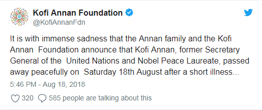 A screenshot was taken from the Kofi Annan Foundation's Twitter account