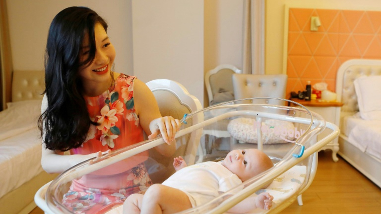 The setting may resemble a five-star hotel, but this is a "sitting center" on Shanghai's outskirts where mothers pay up to 70,000 yuan (11,000 US dollars) a month to stay with their newborns.