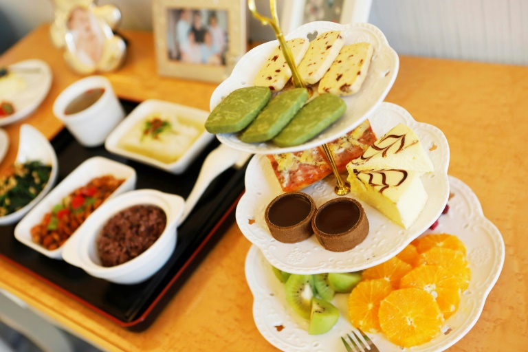 Pastries, cheesecake and fruit are available to new mothers at some of the 'sitting centers.' /AFP Photo