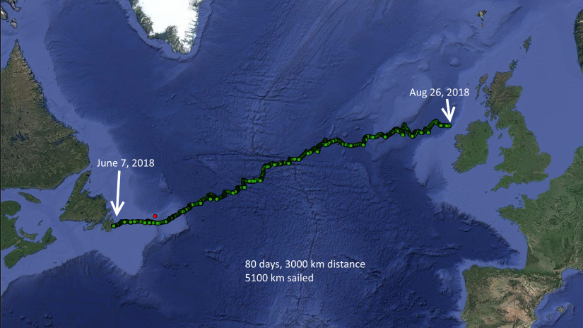 All summer, the small boat drifted steadily eastward across the churning North Atlantic until it neared the Irish coast, where it made history by becoming the first unmanned sailboat to cross the Atlantic.