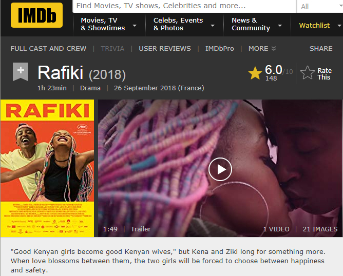 "Rafiki" has also won three nominations in Cannes Film Festival and the Sydney Film Festival.