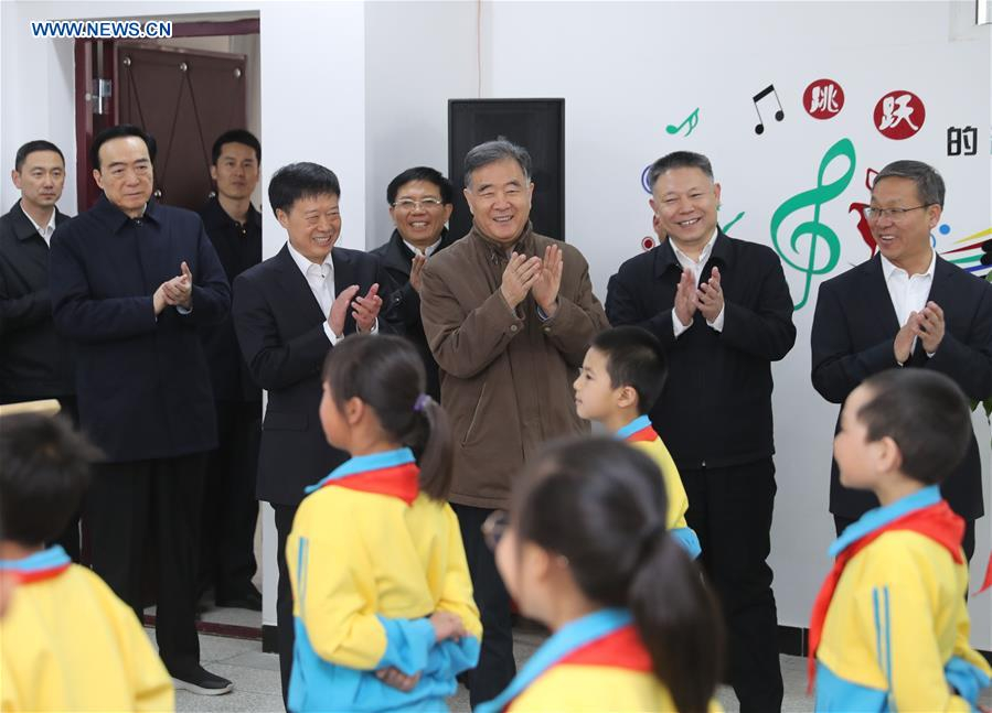 Chinese top political adviser Wang Yang inspects a middle school in Tumxuk, in Xinjiang Uygur Autonomous Region, on March 22, 2019. /Xinhua Photo