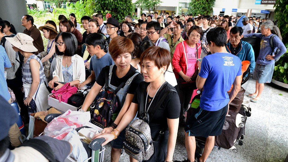 Anxious passengers thronged Bali's airport, waiting for news about their flights.