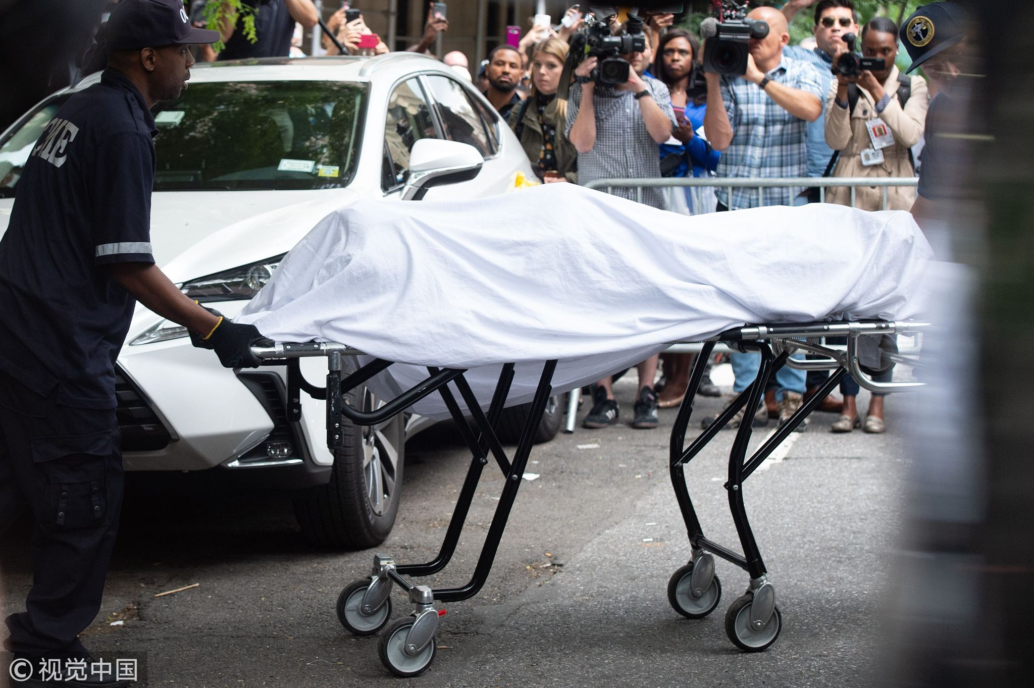 The body of fashion designer Kate Spade is removed by New York City Coroner's Office. /VCG Photo