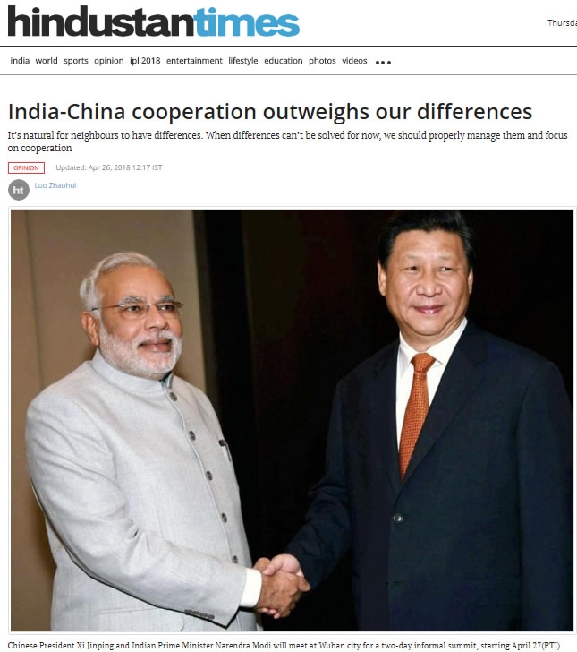 In his article, the Chinese envoy also gave a historical perspective of China-India relations. "History is full of touching stories of monks such as Xuanzang and Bodhidharma traveling over mountains and oceans between China and India. In the 1950s, China and India co-proposed the Five Principles of Peaceful Coexistence, a new contribution to modern international relations."