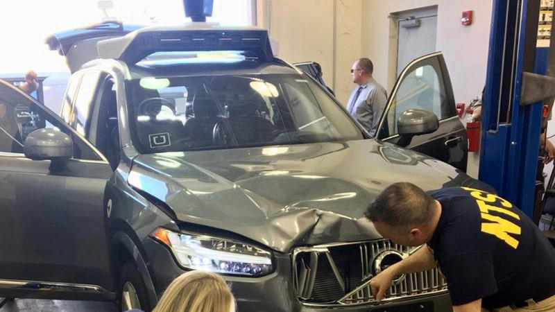 US National Transportation Safety Board (NTSB) investigators examine a self-driving Uber vehicle involved in a fatal accident in Tempe, Arizona, US, March 20, 2018. A women was struck and killed by the vehicle on March 18, 2018. /Reuters Photo