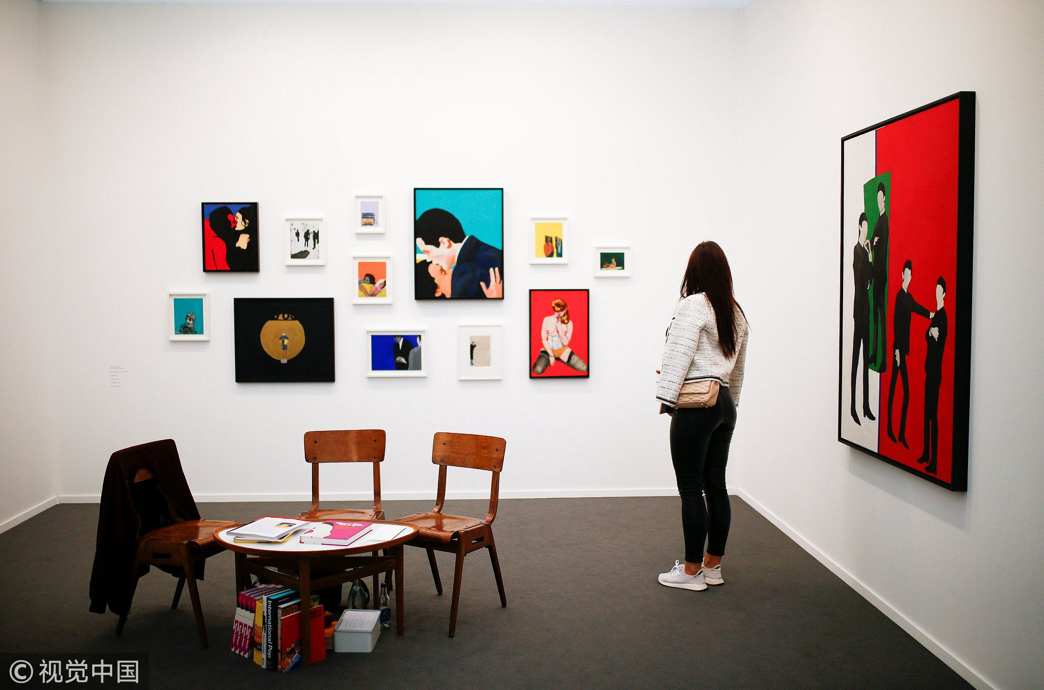 A visitor attends the annual Frieze London art fair in London, on October 7, 2018. /VCG Photo