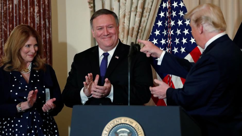 "That's more spirit than I've heard from the State Department in a long time," Trump joked, praising Pompeo's credentials and record as CIA director.