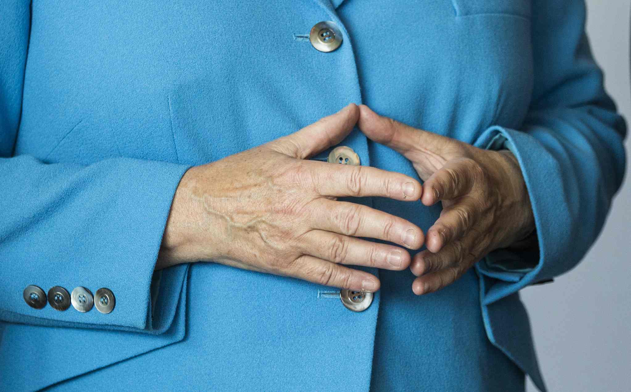 The "Merkel diamond" of German Chancellor Angela Merkel is pictured during her visit to the high technology company TRUMPF Sachsen GmbH in Neukirch, Germany, August 16, 2018. /VCG Photo