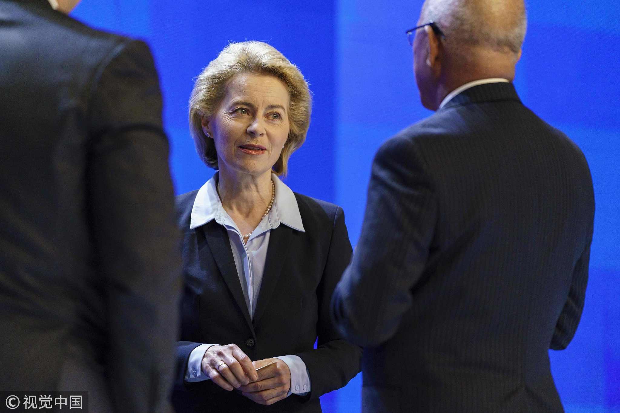 German Defence Minister Ursula von der Leyen talks to delegates during the fourth plenary session at the 17th Asian Security Summit in Singapore on June 3, 2018. /VCG Photo.