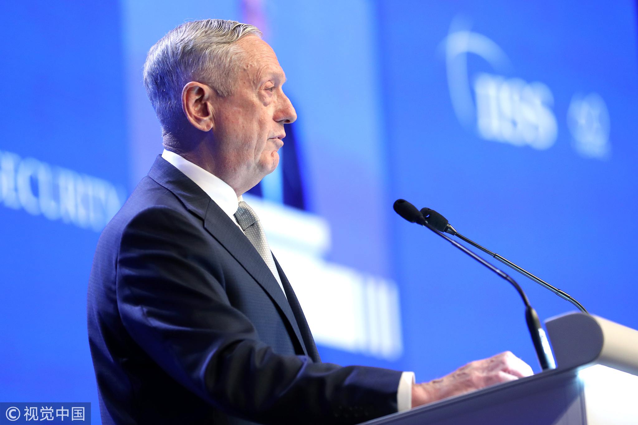 James Mattis, US Secretary of Defense, speaks during the IISS Shangri-La Dialogue Asia Security Summit in Singapore, on Saturday, June 2, 2018. /VCG Photo.