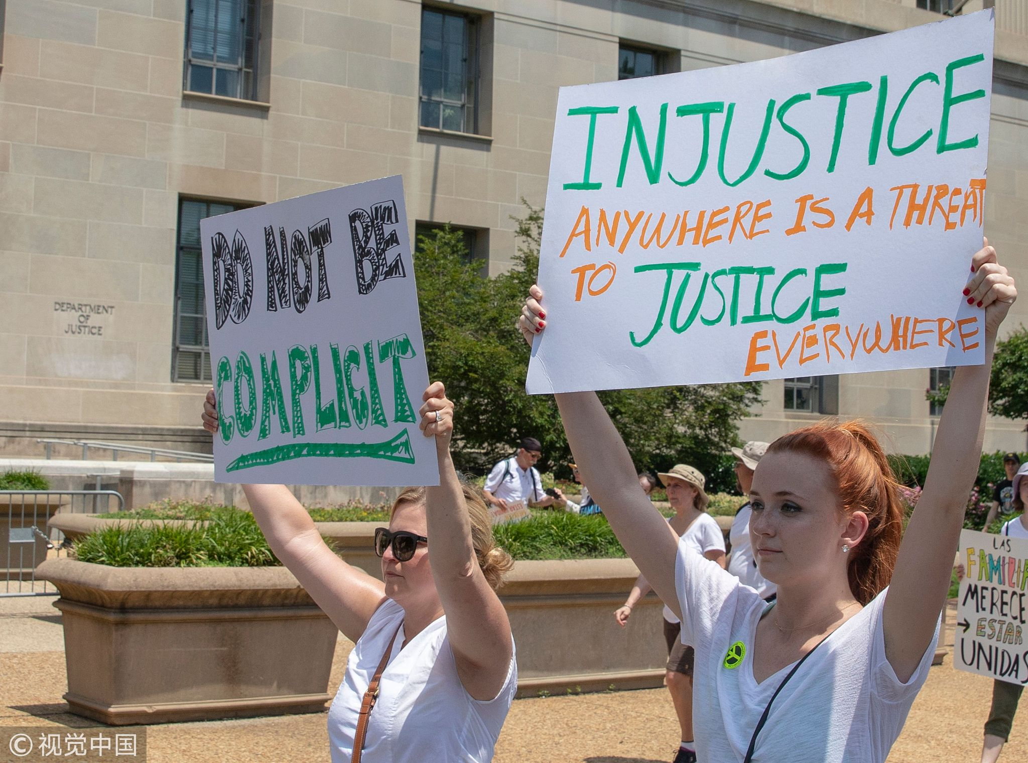Demonstrators march against the separation of immigrant families as they pass the US Justice Department in Washington, DC., June 30, 2018. /VCG Photo