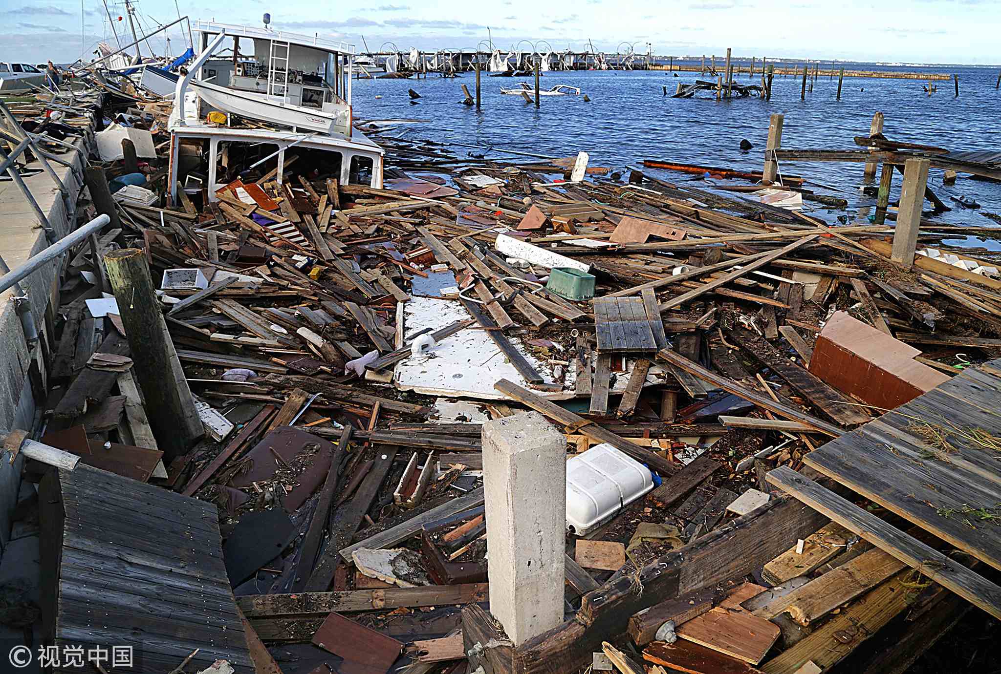 Destroyed boats at the City Marina in Panama City, the day after Hurricane Michael landed in the Florida Panhandle, the US, October 11, 2018. /VCG Photo