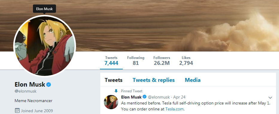 The man with over 26 million Twitter followers has long been very active on his social media account, talking from Tesla cars to SpaceX rockets.