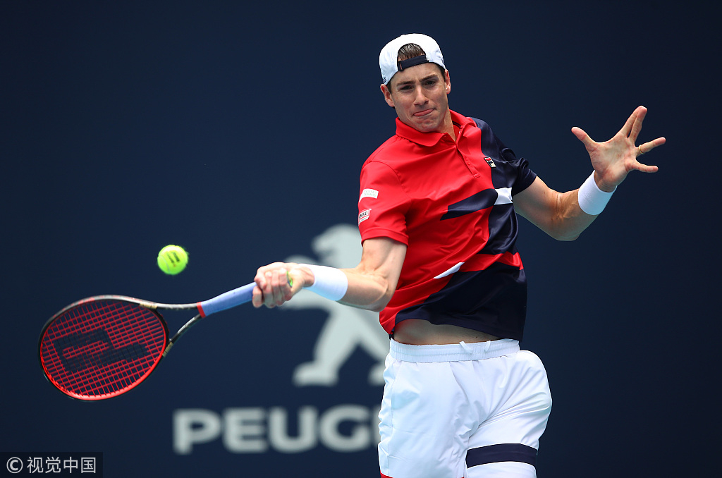John Isner ends Felix Auger-Aliassime's run to set up a Miami Open final with Roger Federer. /VCG Photo
